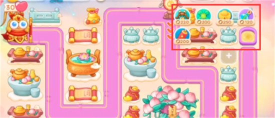 1、炮塔选择泡泡塔、风扇、多重箭、元宝、鞭炮,主要炮塔风扇,可以看下图了解下。