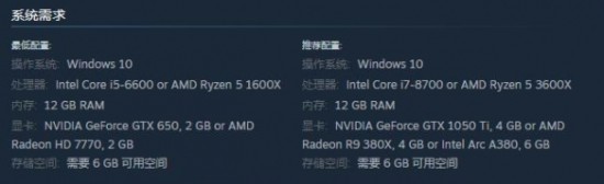 处理器:Intel Core i7-8700 or AMD Ryzen 5 3600X