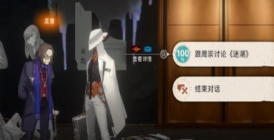 要先在三号展厅看过前置,然後选择第一个"跟周崇讨论迷潮",可以得到线索19,容易漏。