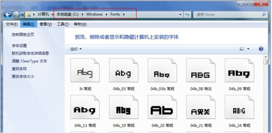 打开C盘的windows文件夹,里面有个文件夹叫Fonts,对,我们电脑中的字体就存放在这个文件夹里。看看里面的文件,就明白了,都是我们电脑中常用的字体,可能有很多是西洋字体,大家并不熟悉,但像什么宋体,楷体之类的,里面已经包含在内。