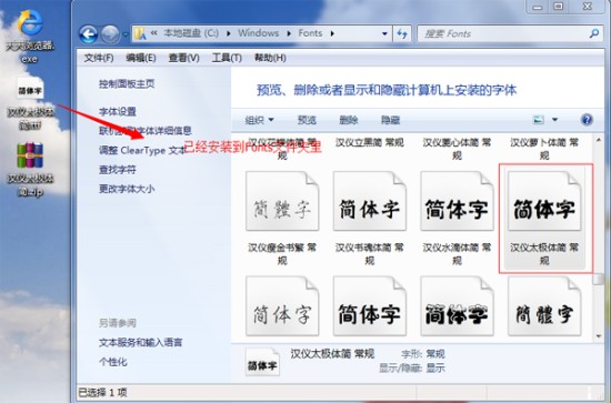 这步算是字体的安装了,很简单,就是将这个文件拖放到系统字体文件夹里就行了。如果是win7系统是可以鼠标右键,安装即可,他会自动安装的,这里我们就直接拖放到或者复制粘贴到C:\WINDOWS\Fonts文件夹里,系统在拖放后会显示安装电脑字体进度,这个过程很快,一闪就过。