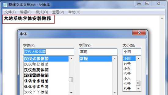 行了,我们的字体就这样安装到自己的电脑里。打开记事本文件,看看我们安装的字体有没有出现。