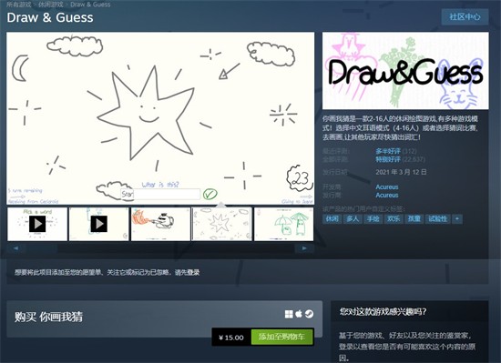steam你画我猜是许多休闲类玩家和路人玩家都比较喜欢的小游戏,在这里玩家可以通过发挥自己的画技来让对方猜测自己画的内容。一般大家都是朋友之间玩这个游戏,所以十分的欢乐。有的用户想要知道steam你画我猜多少钱,所以这里就给大家带来了最新的steam你画我猜售价介绍,方便大家能够了解该游戏的价格。