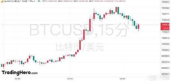 在减半来临之际,比特币一度上破72000美元大关,按照原先计划,比特币将在4月18日前后几天起,矿工开采新区块奖励将减半,也可能是成为推送比特币上涨的催化剂。