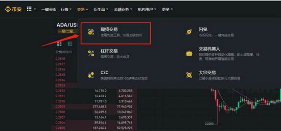 7、点击上方导航栏的【交易】——【现货交易】