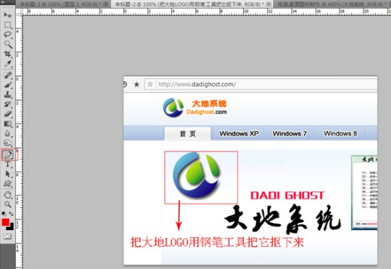 把大地LOGO用钢笔工具把它抠出来,抠图教程这里不再讲解