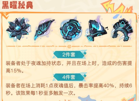 装备者在场上消耗1点夜魂值后,暴击率提高40%,持续6秒。该效果每1秒至多触发一次。