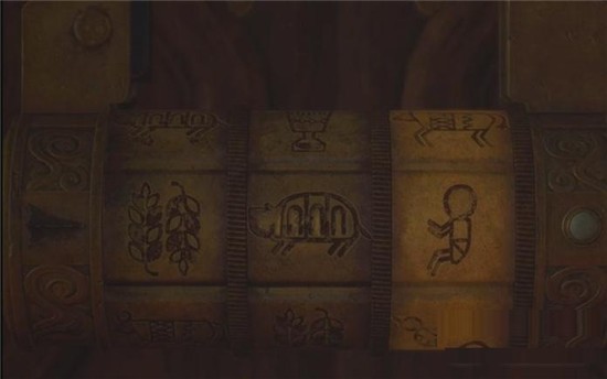 旋转水晶球,使水晶球里的颗粒形成的图案与门上的符号重合(如下图),门就开了。