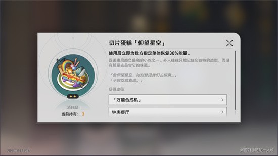效果:使用后立即为我方指定角色恢复30%能量。