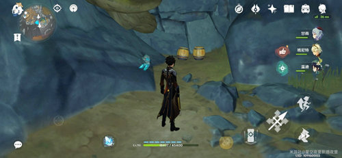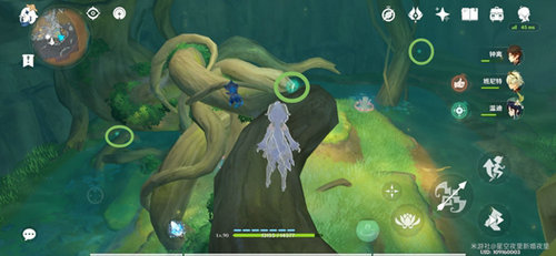 进入洞穴在洞口,我们用炸药桶把洞口岩石炸开,继续往前走,来到洞内门口,派蒙会让我们用元素视野观察,会发现树上有一个小叶子。