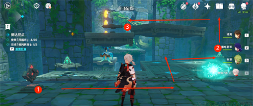 5.箭头所示开启挑战,顺序收集,完成挑战。