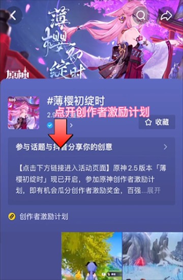 2、点击进入话题之后,就会来到官方的页面,在这里再点击“创作者激励计划”