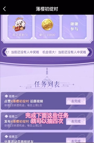 任务二:发布#薄樱初绽时话题视频,获得1次祈愿机会,每日上限2次