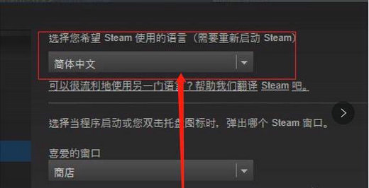 2、我们安装好并进入游戏之后,在电脑显示页面的steam左上角的设置界面中,我们确认语言是中文。
