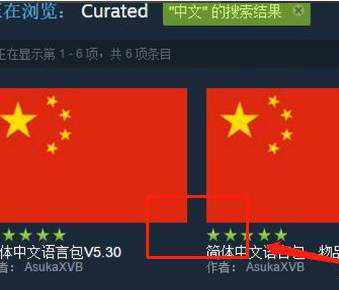 3、然后我们进入unturned的创意工坊界面,搜索“中文”,就可以直接看到两面鲜艳的五星红旗。