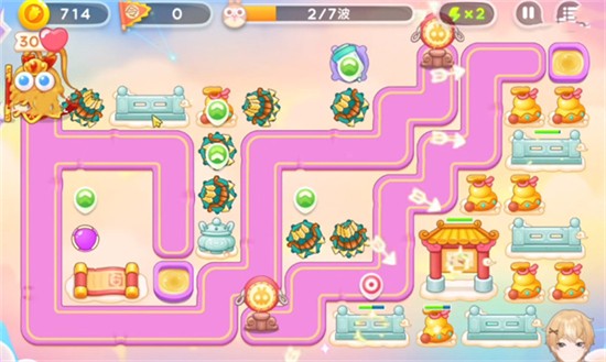 1、首先我们在小怪经过的路径上放置多重箭用来进行输出,在终点位置放置多重箭来拆除障碍物。