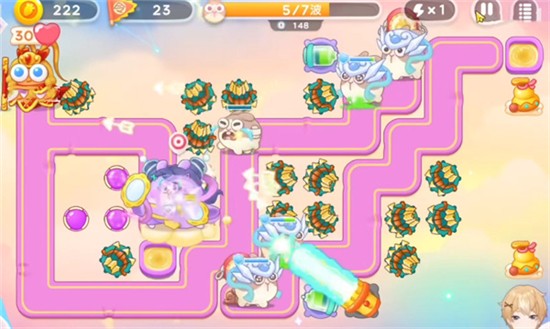 6、第六开始雷公也会出现,我们将积攒的金币全部用来建造多重箭,在左右边上放置手电筒用来穿透小怪减少输出压力。