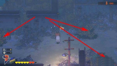 如下图箭头所指,这些荆棘植物不要碰,因为暂时无法对付,